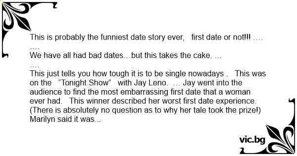 This just tells you how tough it is to be single nowadays . This was on the “Tonight Show” with Jay Leno. … Jay went into the audience to find the most embarrassing first date that a woman ever had. This winner described her worst first date experience.