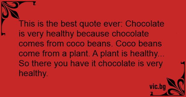 This is the best quote ever: Chocolate is very healthy because chocolate comes from coco beans. Coco beans come from a plant. A plant is healthy... So there you have it chocolate is very healthy.