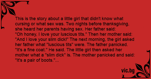 This is the story about a little girl that didn't know what cursing or what sеx was. Two nights before thanksgiving, she heard her parents having sеx. Her father said: