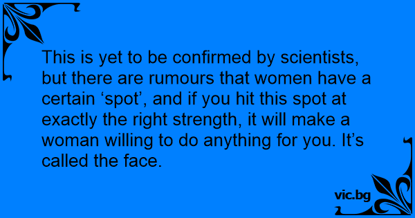 This is yet to be confirmed by scientists, but there are rumours that women have a certain ‘spot’, and if you hit this spot at exactly the right strength, it will make a woman willing to do anything for you. It’s called the face.