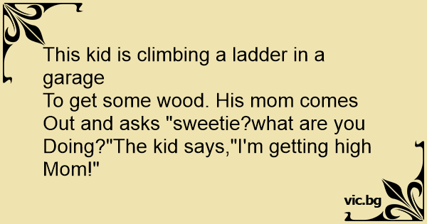 To get some wood. His mom comes Out and asks "sweetie?what are you Doing?"The kid says,"I'm getting high