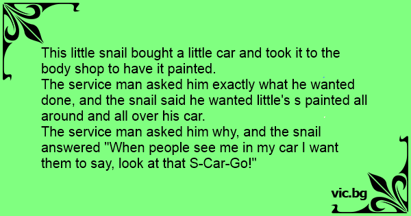 The service man asked him why, and the snail answered "When people see me in my car I want them to say, look at that S-Car-Go!"