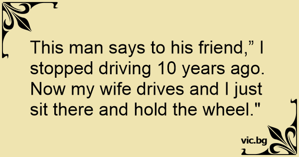 This man says to his friend,” I stopped driving 10 years ago. Now my wife drives and I just sit there and hold the wheel."