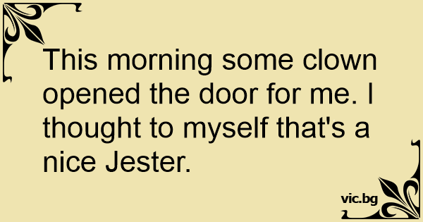 This morning some clown opened the door for me. I thought to myself that's a nice Jester.