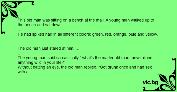 The young man said sarcastically,” what’s the matter old man, never done anything wild in your life?”