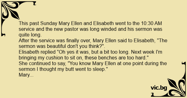 She continued to say, "You know Mary Ellen at one point during the sermon I thought my вuтт went to sleep."