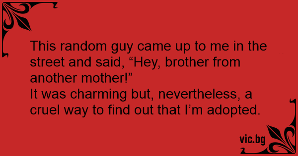 This random guy came up to me in the street and said, “Hey, brother from another mother!”