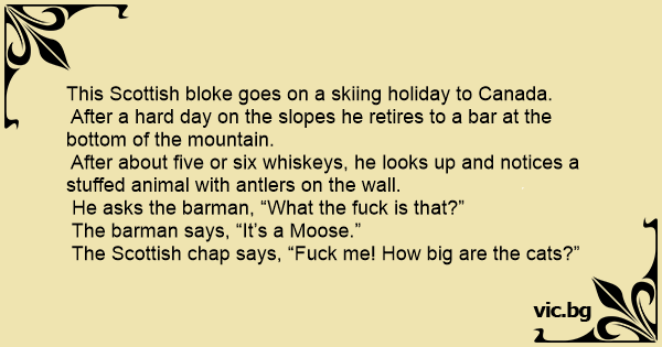 The barman says, “It’s a Moose.”