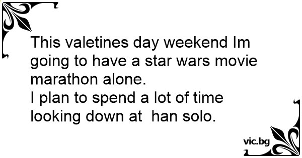 This valetines day weekend Im going to have a star wars movie marathon alone.