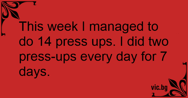 This week I managed to do 14 press ups. I did two press-ups every day for 7 days.