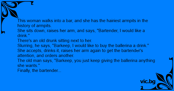 This woman walks into a bar, and she has the hairiest armpits in the history of armpits.