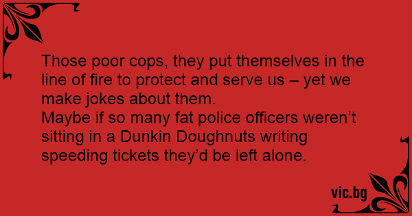 Those poor cops, they put themselves in the line of fire to protect and serve us – yet we make jokes about them.