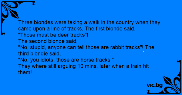 Three blondes were taking a walk in the country when they came upon a line of tracks. The first blonde said,