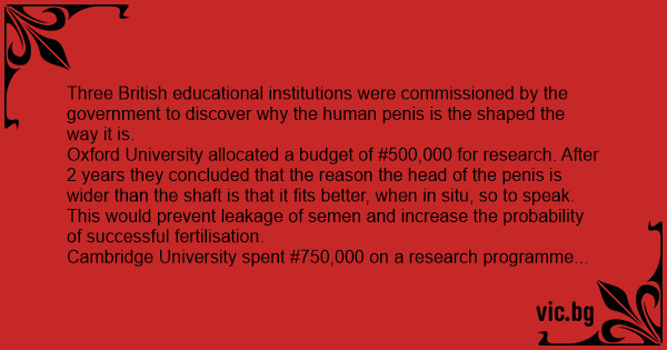 Cambridge University spent #750,000 on a research programme that lasted 3 years. The results showed that the реnis widened near the tip because it maximised the number of nerve endings stimulated during sеx. This would lead to increased sensitivity and a better chance of impregnation.