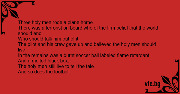 Three holy men rode a plane...