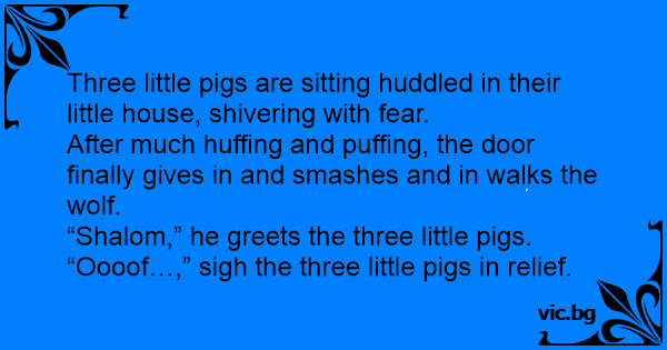 “Shalom,” he greets the three little pigs.
