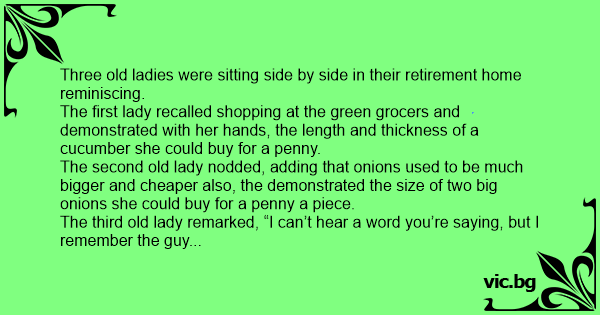 The third old lady remarked, “I can’t hear a word you’re saying, but I remember the guy you’re talking about.”