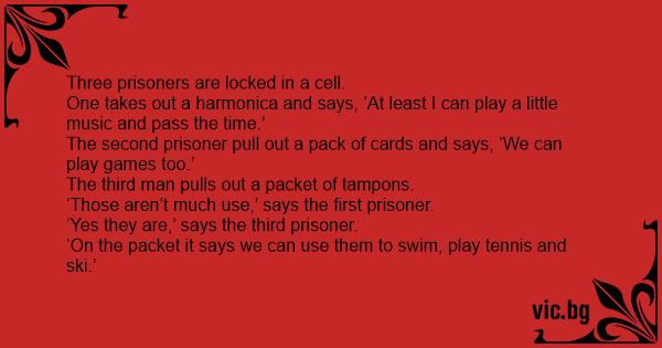 The second prisoner pull out a pack of cards and says, ‘We can play games too.’
