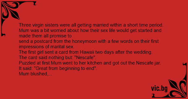 send a postcard from the honeymoon with a few words on their first impressions of marital sеx.