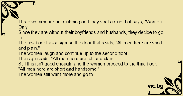 Three women are out clubbing and they spot a club that says, "Women Only."