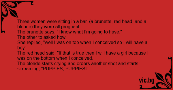 The red head said, "If that is true then I will have a girl because I was on the bottom when I conceived.