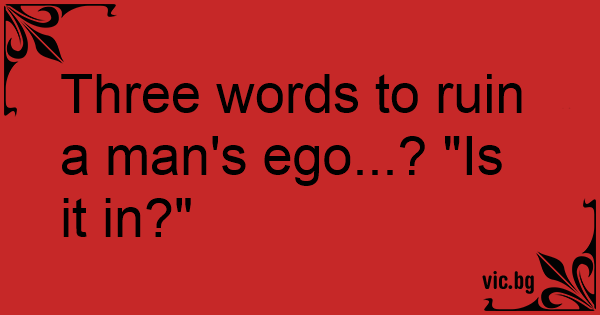 Three words to ruin a man's ego...? "Is it in?"