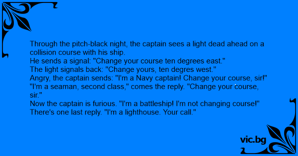 Angry, the captain sends: "I'm a Navy captain! Change your course, sir!"