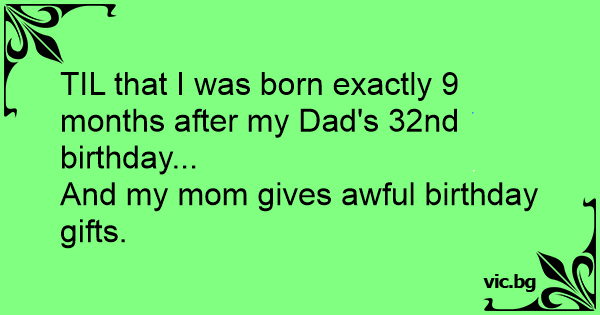 TIL that I was born exactly 9 months after my Dad's 32nd birthday...