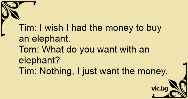 Tim: I wish I had the money to buy an elephant.