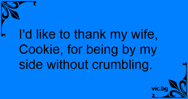 I'd like to thank my wife, Cookie, for being by my side without crumbling.