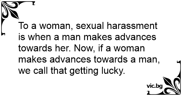 To a woman, sеxuаl harassment is when a man makes advances towards her. Now, if a woman makes advances towards a man, we call that getting lucky.