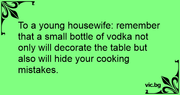To a young housewife: remember that a small bottle of vоdка not only will decorate the table but also will hide your cooking mistakes.