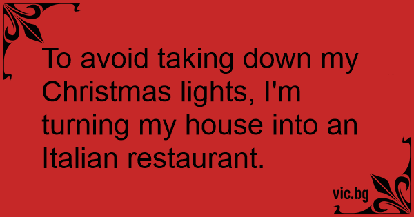 To avoid taking down my Christmas lights, I'm turning my house into an Italian restaurant.