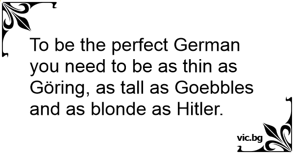 To be the perfect German you need to be as thin as Göring, as tall as Goebbles and as blonde as Нiтlеr.