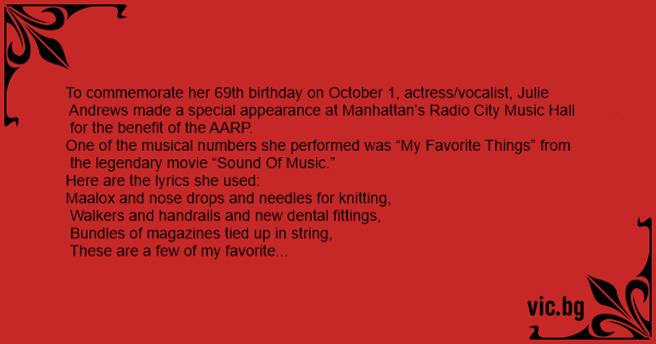 To commemorate her 69th birthday on October 1, actress/vocalist, Julie