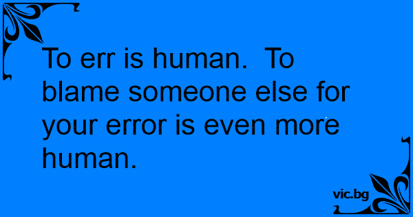 To err is human. To blame someone else for your error is even more human.