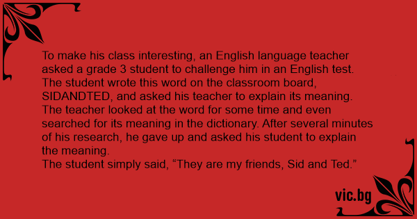 To make his class interesting, an English language teacher asked a grade 3 student to challenge him in an English test. The student wrote this word on the classroom board, SIDANDTED, and asked his teacher to explain its meaning.