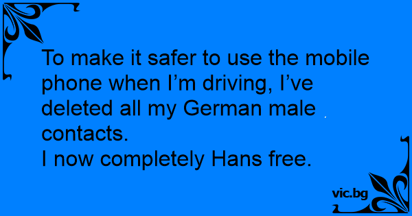 To make it safer to use the mobile phone when I’m driving, I’ve deleted all my German male contacts.