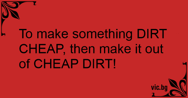 To make something DIRT CHEAP, then make it out of CHEAP DIRT!