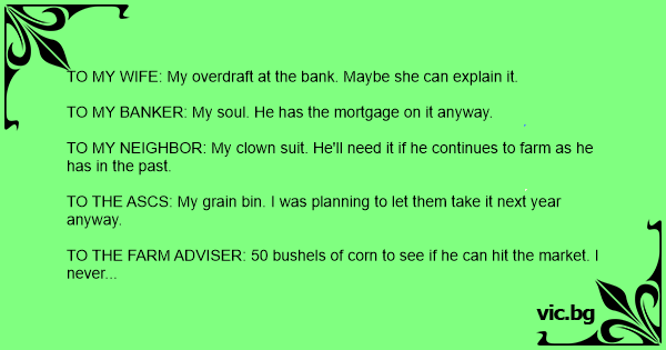 TO MY UNDERTAKER: A special request. I want six implement and fertilizer dealers for my pallbearers. They're used to carrying me.