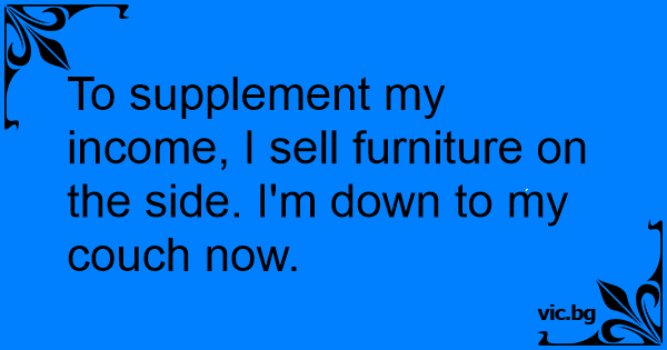 To supplement my income, I sell furniture on the side. I'm down to my couch now.