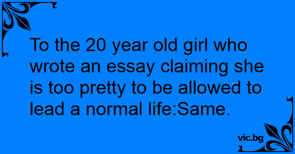 To the 20 year old girl who wrote an essay claiming she is too pretty to be allowed to lead a normal life:Same.