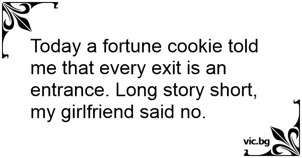 Today a fortune cookie told me that every exit is an entrance. Long story short, my girlfriend said no.