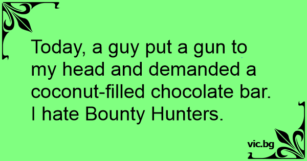 Today, a guy put a gun to my head and demanded a coconut-filled chocolate bar.