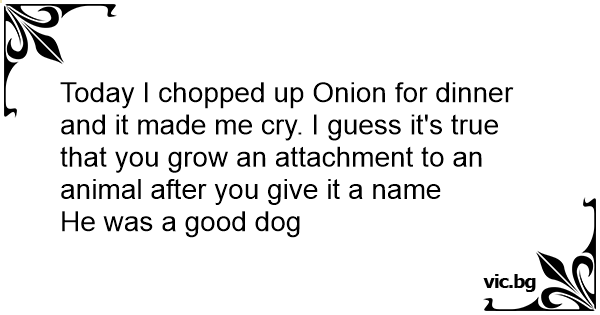 Today I chopped up Onion for dinner and it made me cry. I guess it's true that you grow an attachment to an animal after you give it a name