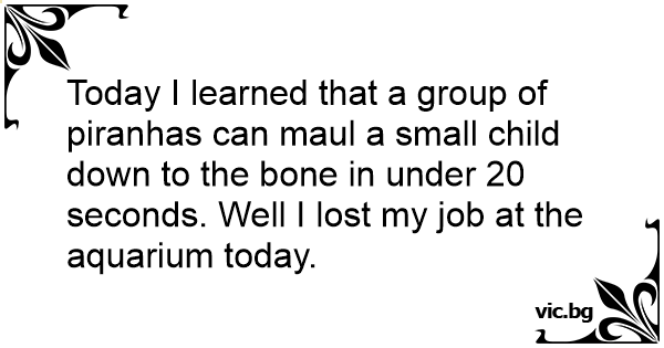Today I learned that a group of piranhas can maul a small child down to the воnе in under 20 seconds. Well I lost my job at the aquarium today.