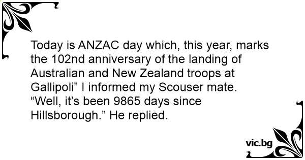 Today is ANZAC day which, this year, marks the 102nd anniversary of the landing of Australian and New Zealand troops at Gallipoli” I informed my Scouser mate.