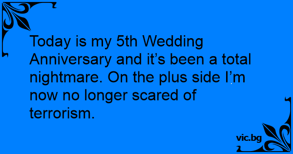 Today is my 5th Wedding Anniversary and it’s been a total nightmare. On the plus side I’m now no longer scared of terrorism.