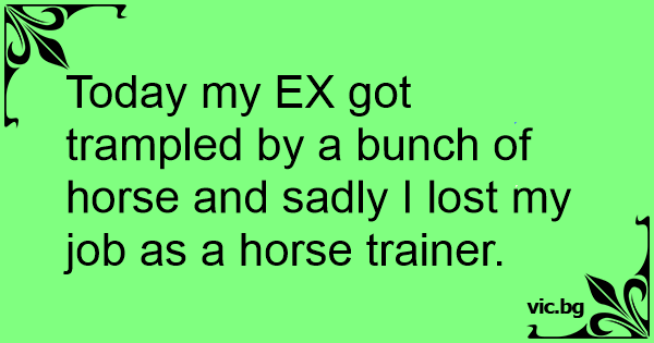 Today my EX got trampled by a bunch of horse and sadly I lost my job as a horse trainer.