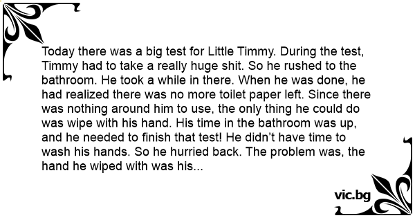 Today there was a big test for Little Timmy. During the test, Timmy had to take a really huge shiт. So he rushed to the bathroom. He took a while in there. When he was done, he had realized there was no more toilet paper left. Since there was nothing around him to use, the only thing he could do was wipe with his hand. His time in the bathroom was up, and he needed to finish that test! He didn’t have time to wash his hands. So he hurried back. The problem was, the hand he wiped with was his right hand. He used his left hand to complete the test, which made him fail. When he got home, his mother was standing there crossing her arms. “Timmy, the teacher had called and said you wrote sloppy on your test. Why is that?” Timmy replied, “Oh, it’s because I caught a leprechaun with my right hand, but if I opened it my classmates would scare him away, so I had to use my left.” Timmy’s mother glared at him with disbelief. “Timmy, I don’t believe you. Now open your hand!” Timmy did so and opened his hand. “See, mother? I said you’d scare the shiт out of him!”